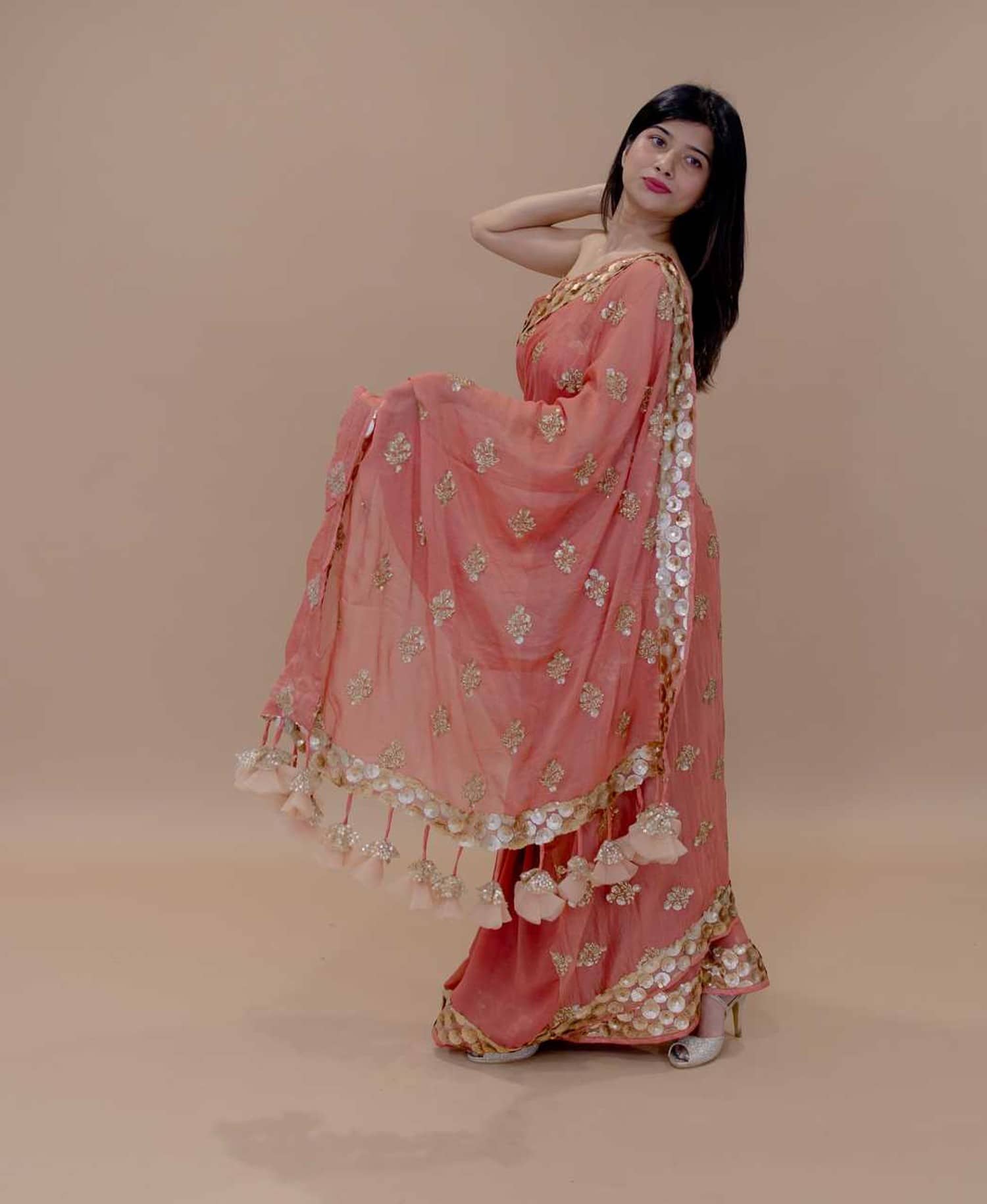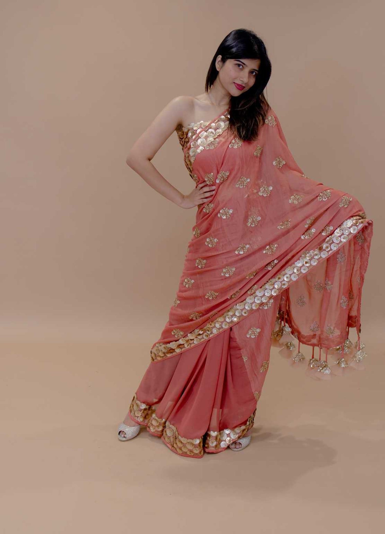 Peaches sarees can come in silk, chiffon, georgette, cotton, or satin fabrics to give every occasion a different twist.