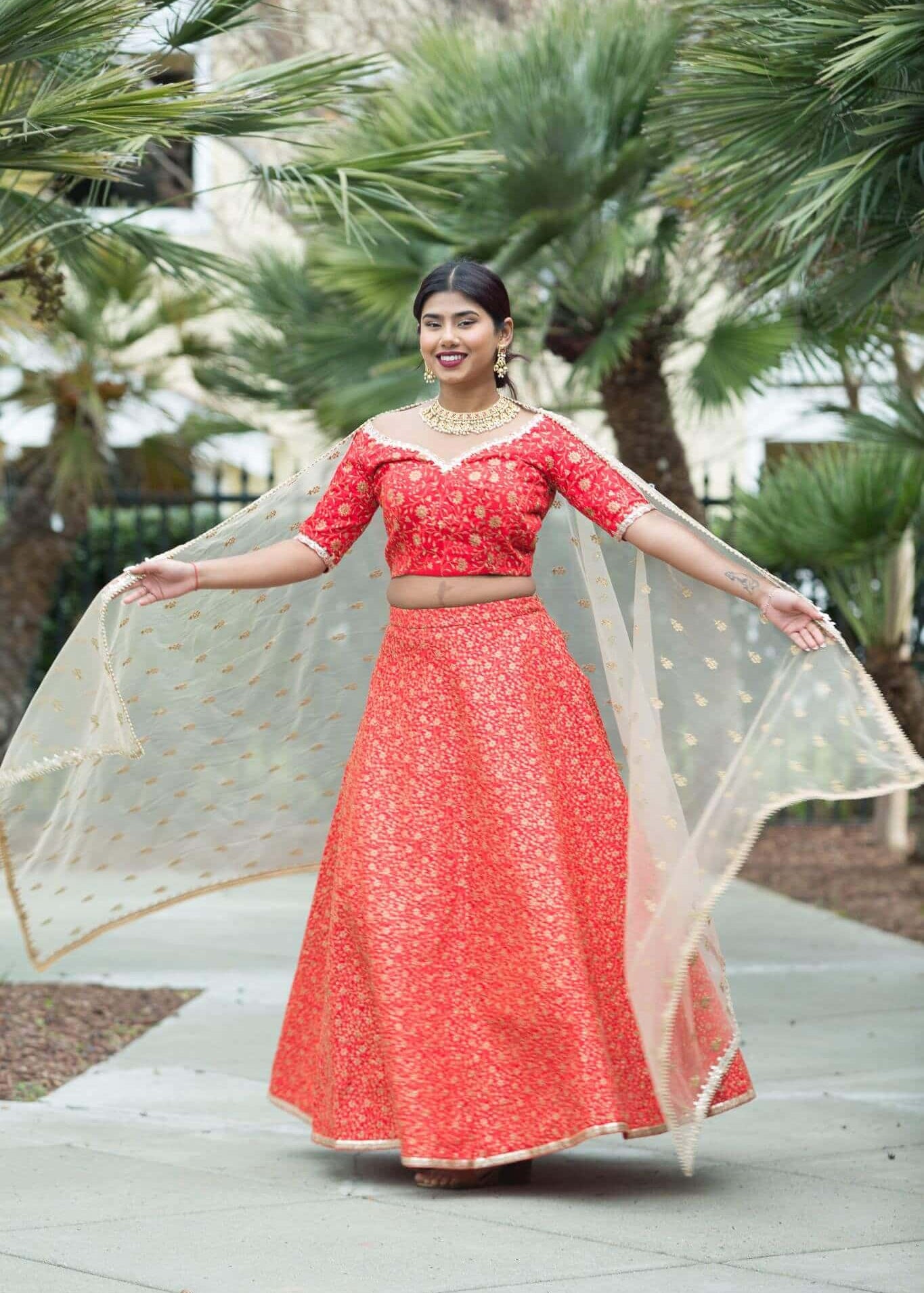The latest red lehenga designs blend contemporary cuts with traditional fabrics and embellishments. In fact, the A-line lehenga is a never-ending favorite due to the flowing silhouette. The form-fitting mermaid cut offers elegance in its creation. Asymmetrical hemlines, intricately hand-embellished designs often with a statement blouse or crop top make a fashionista. In addition, a red lehenga is worn more with modern accessories such that this beautiful fusion becomes the definition of classic elegance and trendy chic.