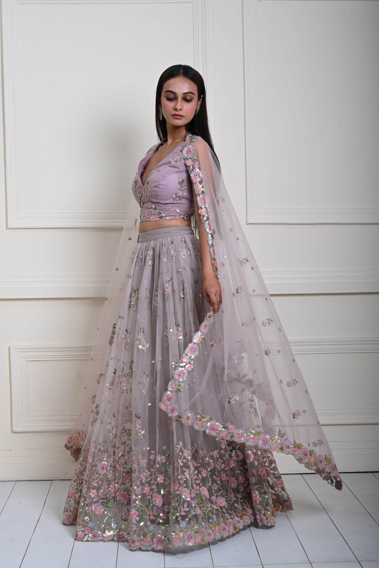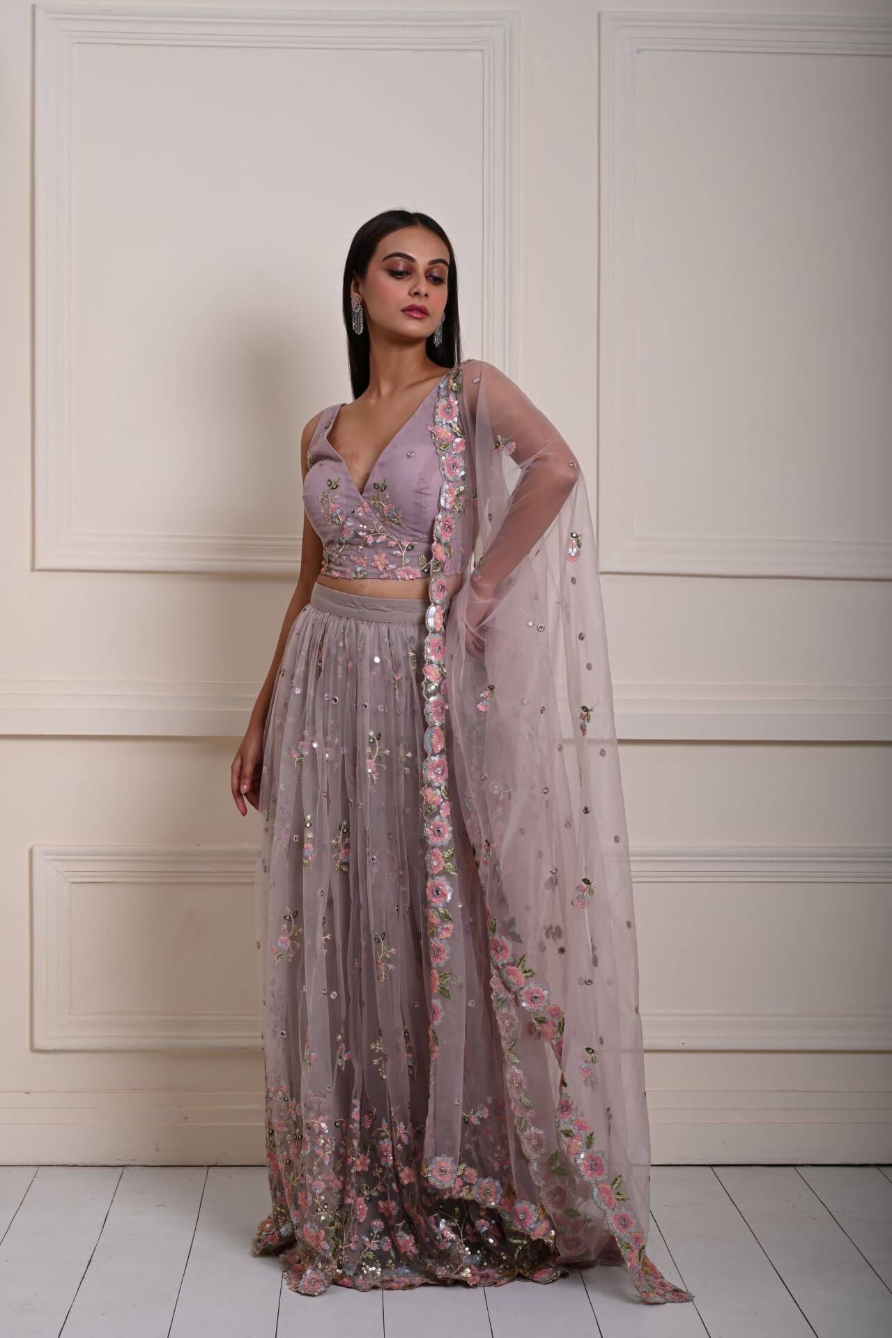Mauve Bridesmaid Lehenga with Intricate Floral Embroidery