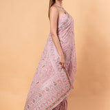 Light Pink Georgette Chikankari Saree with Multicolor Floral Embroidery