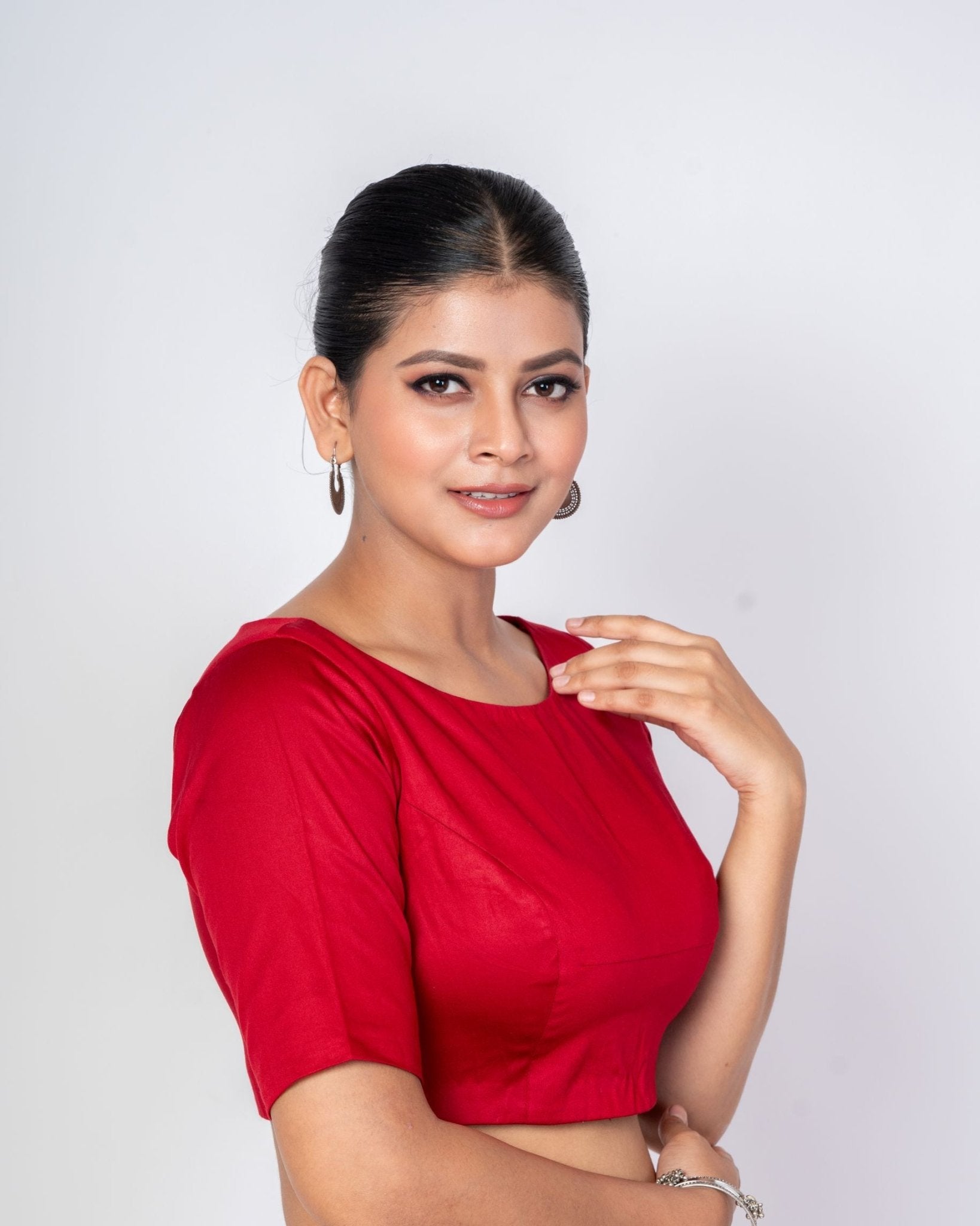 Elevate your ethnic wardrobe with this refined maroon blouse, designed with a graceful boat neckline that frames the shoulders beautifully. The elbow-length sleeves offer a perfect balance of elegance and practicality, making it ideal for both traditional occasions and contemporary styling. Crafted in a rich maroon hue, this versatile piece pairs seamlessly with sarees, lehengas, or skirts for a polished, put-together look. The front and back boat neck design ensures a flattering silhouette that works for various body types, while the structured fabric maintains its shape throughout the day.